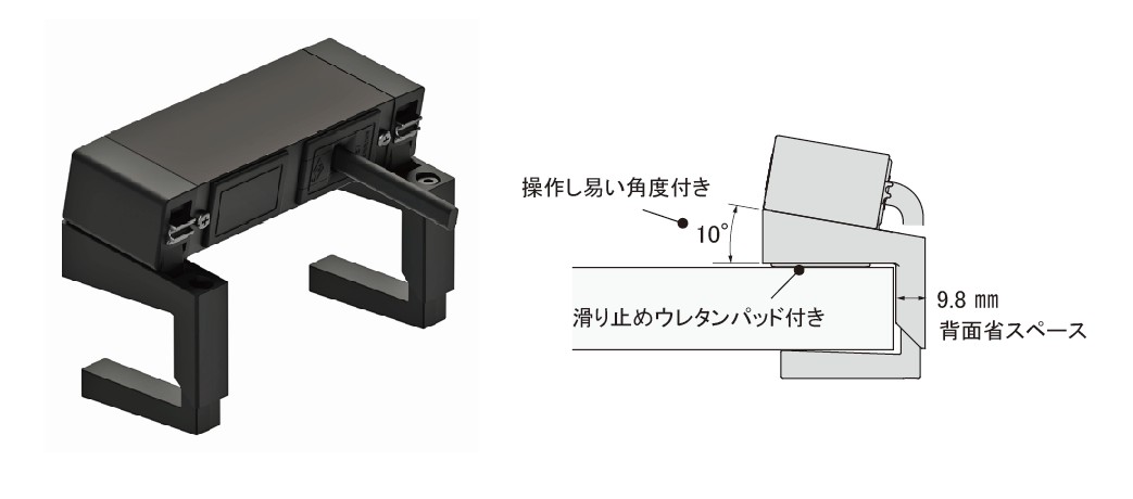 必要な背面幅は9.8㎜なので、省スペースで取り付けが可能です。